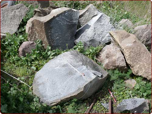 The cartridge is confined in a drill hole by means of stemming and when ignited generates a large volume of gas. This gas enters into the micro fractures created by the percussion drilling process, natural faults and weaknesses of the rock, resulting in the rock splitting due to tensile stresses.